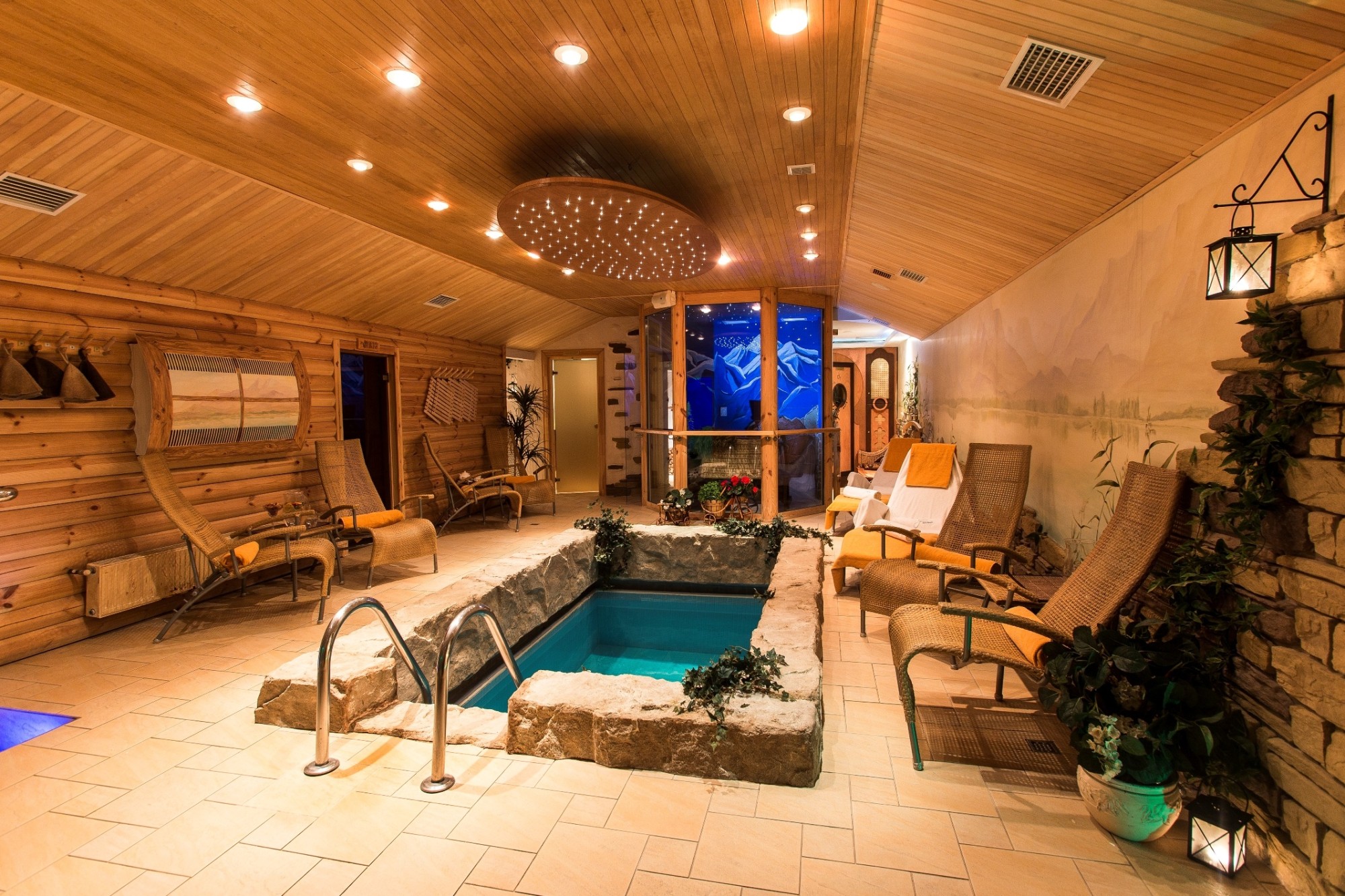 Tavā rīcībā būs autentiska tradicionālā slāvu un aromātiskā kadiķu pirts, velzējošs baseins ar jūras ūdeni, asākām izjūtām paredzētais āliņģis un kontrastu duša geizers, kā arī džakuzi uz terases un unikāla aromātiskā siena relaksācijas telpa. Tevi sagaida privāta un relaksējoša vide, jo pirts zona vienlaicīgi uzņem ne vairāk kā 5 viesus, garantējot mieru un īpašu atmosfēru.