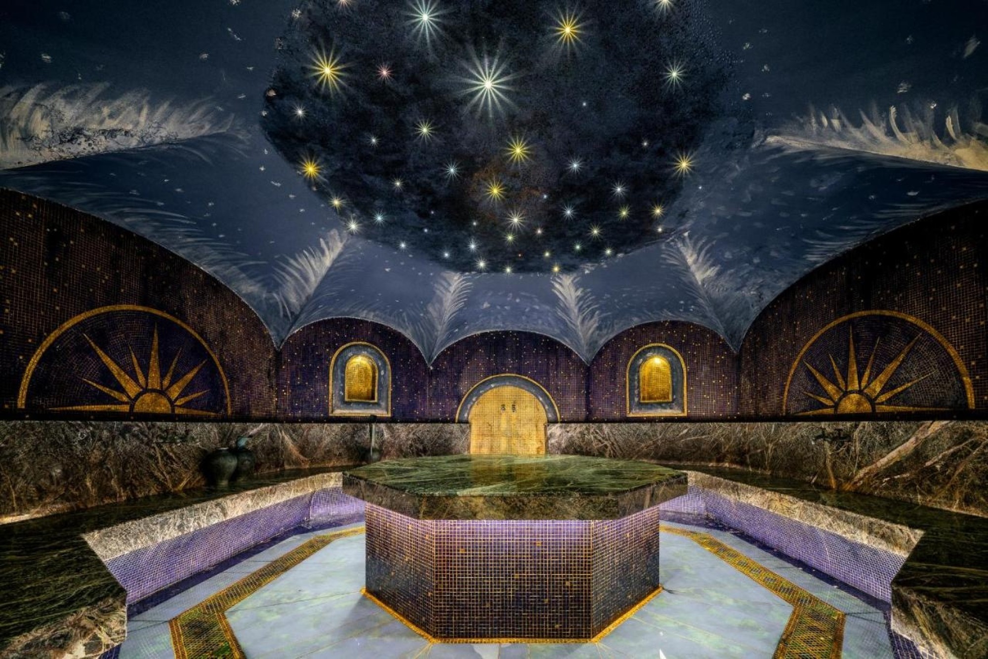 SPA programmas laikā izmēģināsi arī Hamam – turku pirti, kur uz dabīga oniksa galda tiek pasniegtas ziepju putas un vienreizlietojams pīlinga cimds. Iepazīsi Rasul – austrumu pirti ar zvaigžņotām debesīm, kur varēsi uzklāt māla masku ādas veselībai un maigumam.
