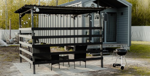 Место отдыха "Mierklani" идеально подходит для красивых и романтических событий жизни! Стильный интерьер, тихая, закрытая территория и близость моря делают это место настоящим оазисом спокойствия. В Твоем распоряжении будет уютный домик отдыха (20 м²) с оборудованной кухней, спальной и гостиной зонами и современно оформленной ванной комнатой. Комфортный климат в доме поддерживается как в жаркие летние дни, так и в прохладные зимние вечера. На территории есть уютная терраса с возможностью приготовления вкуснейшего ужина на гриле. Здесь так прекрасно встречать закат, вслушиваясь в шепот морских волн...Для полноценной релаксации есть также подогреваемый кубл с LED подсветкой и функцией гидромассажа, где можно насладиться моментом в теплом облаке пузырьков при свете романтических гирлянд.
