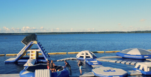 В зеленом сердце Риги - Межапарке у Кишезерса создано место для активного отдыха на природе! Проведите время с семьей, друзьями или коллегами по работе в водном надувном парке развлечений из 87 фигур, которые вместе составляют 1500 м2 веселья на озере Кишезерс! Также это отличное место для проведения мальчишников/девичников, дня рождения, школьных или корпоративных мероприятий.