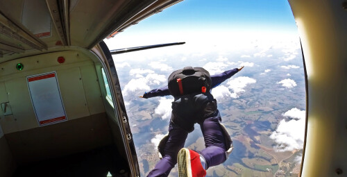 Первый прыжок состоит в основном из преодоления психологического барьера. Ведь предстоит выпрыгнуть из летящего самолета! Десантный парашют D-6 идеально подходит для этого. Раскрывающий парашют механизм, прикрепленный к тросу при помощи карабина, запускается автоматически при выходе из самолета. Вам остается только насладиться прыжком и удачно приземлиться.