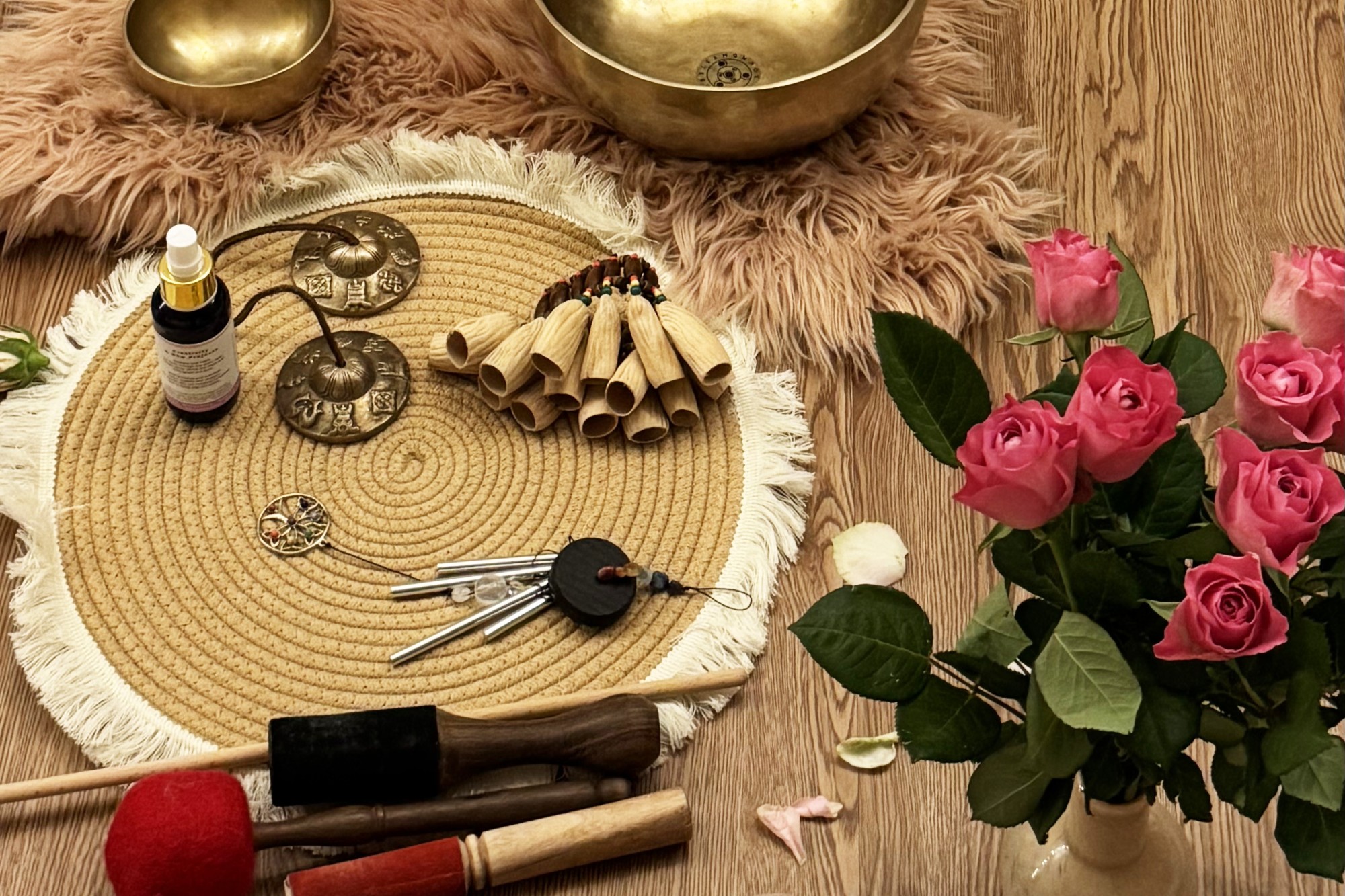 • Глубоко расслабляющая звуковая медитация с тибетскими поющими чашами и другими инструментами;